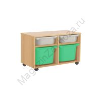 Из ЛДСП Бук или Цветного Кромка ПВХ. Размеры:650х450х500мм Вес:21кг Объём:0,07м/куб Контейнер ПВХ:300х420х100мм - 2шт. Контейнер ПВХ:300х420х230мм - 2шт. Установлены пластиковые или усиленные поворотные прорезиненные колеса. 2 из них со стопором (тормозом). Направляющий полозок алюминий.