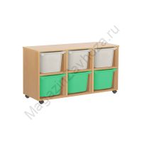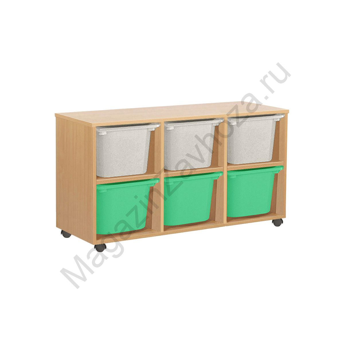 Из ЛДСП Бук или Цветного Кромка ПВХ. Размеры:976х450х650мм Вес:38кг Объём:0,1м/куб Контейнер ПВХ:300х420х230мм - 6шт. Установлены пластиковые или усиленные поворотные прорезиненные колеса. 2 из них со стопором (тормозом). Направляющий полозок алюминий.
