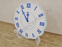 Театральная декорация "Часы новогодние напольные" состоят из циферблата(без механизма) и ажурной подставки. Высота изделия 1,2м. Стрелки подвижные. Цифры римские накладные(объемные). Циферблат выполнен из ПВХ 6мм. Подставка выполнена из окрашенного в белый цвет МДФ 6мм. Часы чудесно впишутся не только в новогодний интерьер. Для удобства использование возможна установка дополнительных креплений к стене
