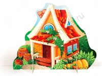 Театральная декорация "Домик с черепичной крышей" (лето-зима) выполнена из МДФ, с нанесением полноцветного рисунка с двух сторон. Высота декорации 1,2м, ширина - 1,5м.