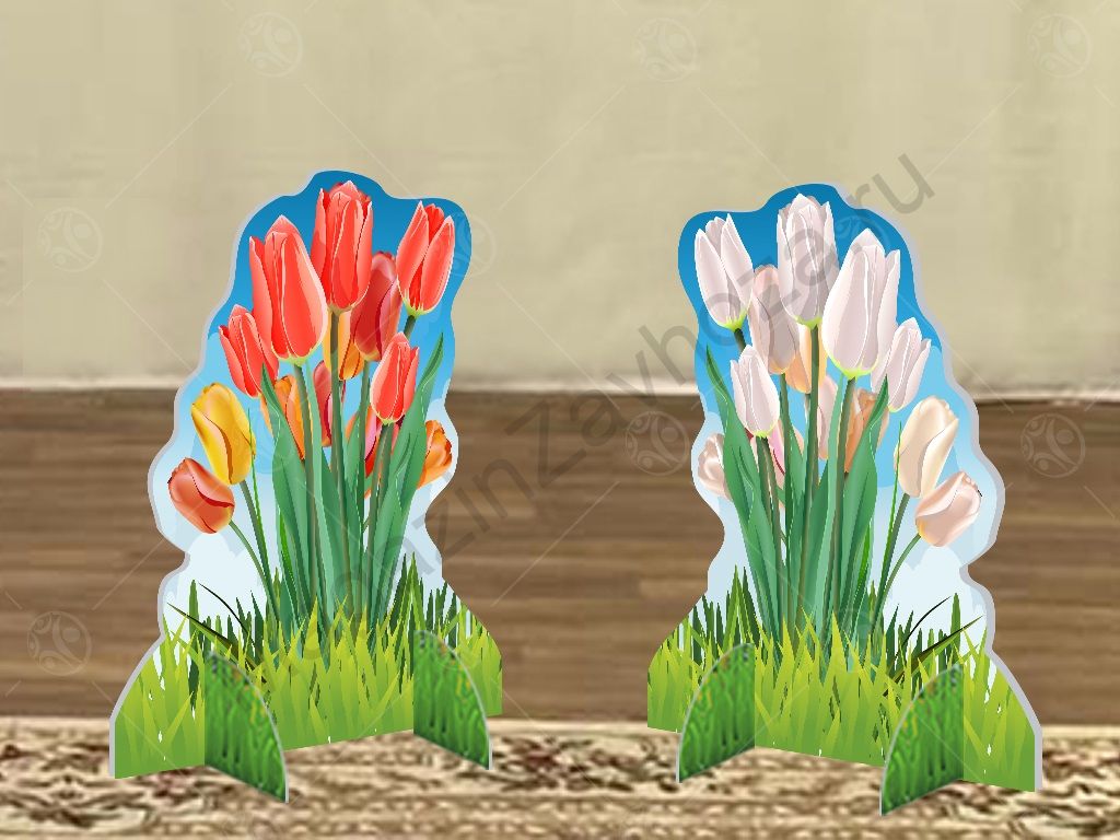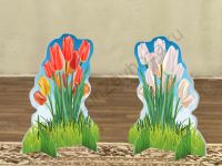 Театральная декорация "Тюльпаны" выполнена из МДФ, с нанесением полноцветного рисунка с двух сторон. Декорация имеет устойчивые подножки. Высота декорации 0,65м, ширина - 0,6м.