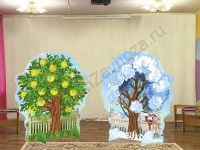 Театральная декорация "Яблоня садовая" (лето-зима) выполнена из МДФ, с нанесением полноцветного рисунка с двух сторон. Высота декорации 1,1м, ширина - 1м.