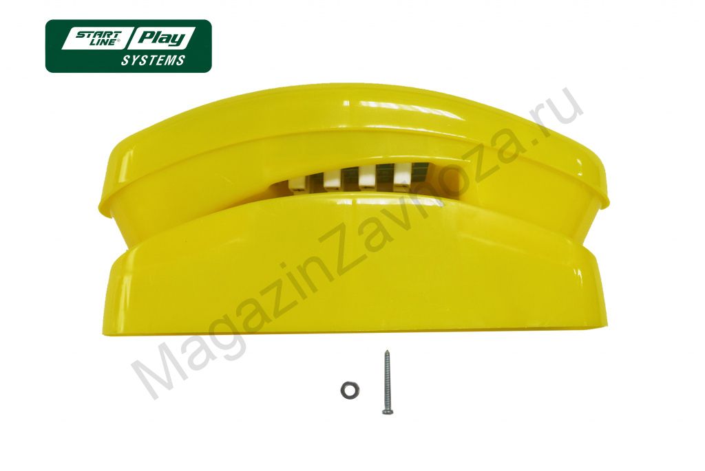 По форме, и по функциям имитирует классический телефон с трубкой и кнопками для нажимания.