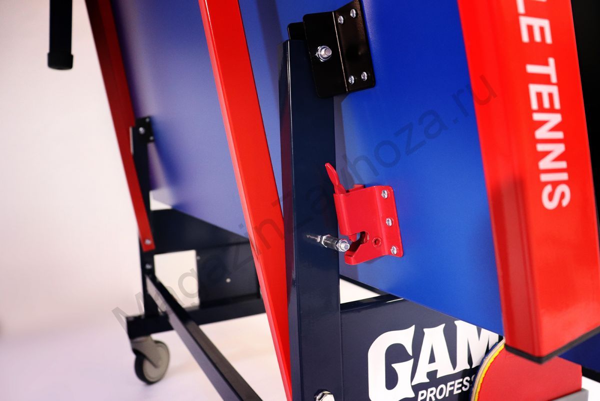Рама: стальной профиль 40х40 мм и 40х25 мм. Раскосы металлические с фиксаторами надежно удерживают теннисный стол. Металлические детали имеют полимерное покрытие