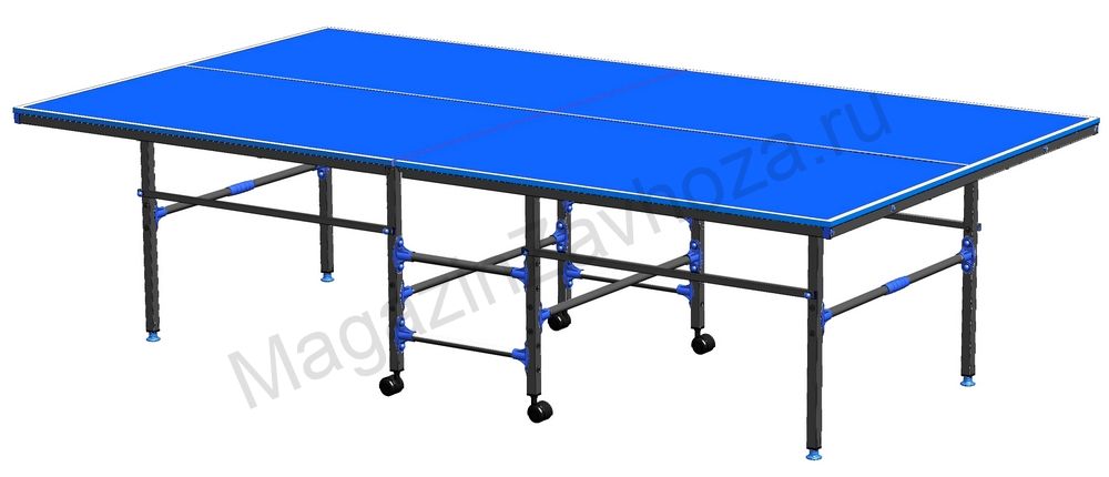 !{По правилам ITTF (Международной федерации настольного тенниса) стол должен иметь длину 2,74 м и ширину 1,525 м и лежать на 76 см от пола. Игровая поверхность должна обеспечивать высоту отскока около 23 см при падении на нее стандартного мяча с высоты 30 см. Игровая поверхность должна быть темного цвета, с белой линией шириной 2 см вдоль каждой кромки. Половина должна быть разделена на две равные "полуплощадки" белой линией шириной 3 мм. Чем тяжелее стол, тем лучше его игровые свойства. Жесткость и вес стола достигается отбортовкой. Для игры в помещении. Материал столешницы -- ламинированная МДФ 16 мм. Высота столешницы с отбортовкой -- 46 мм. Сечение ножки -- 30*30 мм. Сетка в комплект не входит. Конструкция позволяет использовать стол для тренировки без партнера в положении с ..}