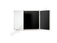 Рабочая поверхность изготовлена из полимерного листа высочайшего качества, обрамление — высокопрочный алюминиевый профиль, благодаря чему доска имеет высокую износоустойчивость, прочность и надежность конструкции. 1-й элемент это центральная часть школьной доски, которая крепится к стене, а створки (2-й и 3-й элементы), могут независимо открываться и закрываться от плоскости центральной части доски до плоскости стены. Петли многоэлементных досок рассчитаны на нагрузку свыше 100 кг. Имеется лоток для мела/маркера и принадлежностей.