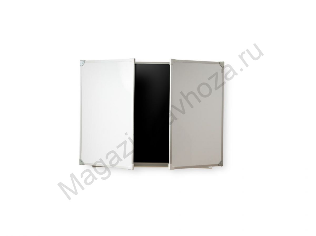 Трёхэлементная магнитная полимерная школьная доска 3400х1000 комбинированная(черный/маркер)