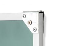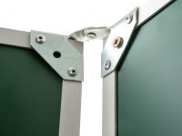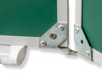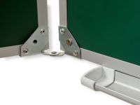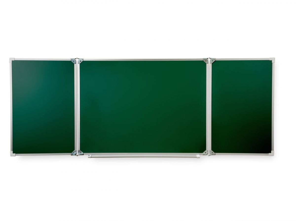 Рабочая поверхность изготовлена из полимерного листа высочайшего качества, обрамление — высокопрочный алюминиевый профиль, благодаря чему доска имеет высокую износоустойчивость, прочность и надежность конструкции. 1-й элемент это центральная часть школьной доски, которая крепится к стене, а створки (2-й и 3-й элементы), могут независимо открываться и закрываться от плоскости центральной части доски до плоскости стены. Петли многоэлементных досок рассчитаны на нагрузку свыше 100 кг. Имеется лоток для мела/маркера и принадлежностей.