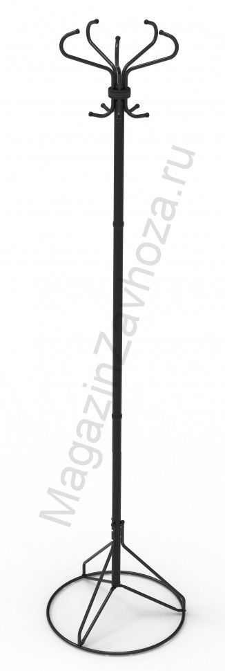 Вешалка напольная на 5 крючков. Выполнена из оцинкованной стали с полимерным покрытием. Поставляется в разобранном виде в картонной таре. Элементы вешалки покрыты защитной полиэтиленовой пленкой. Ø 455 Н=1850