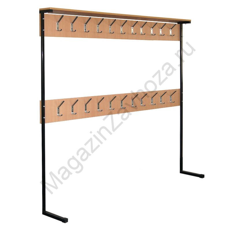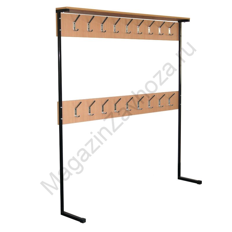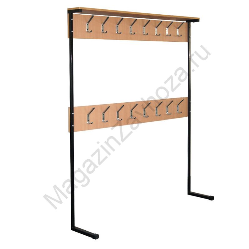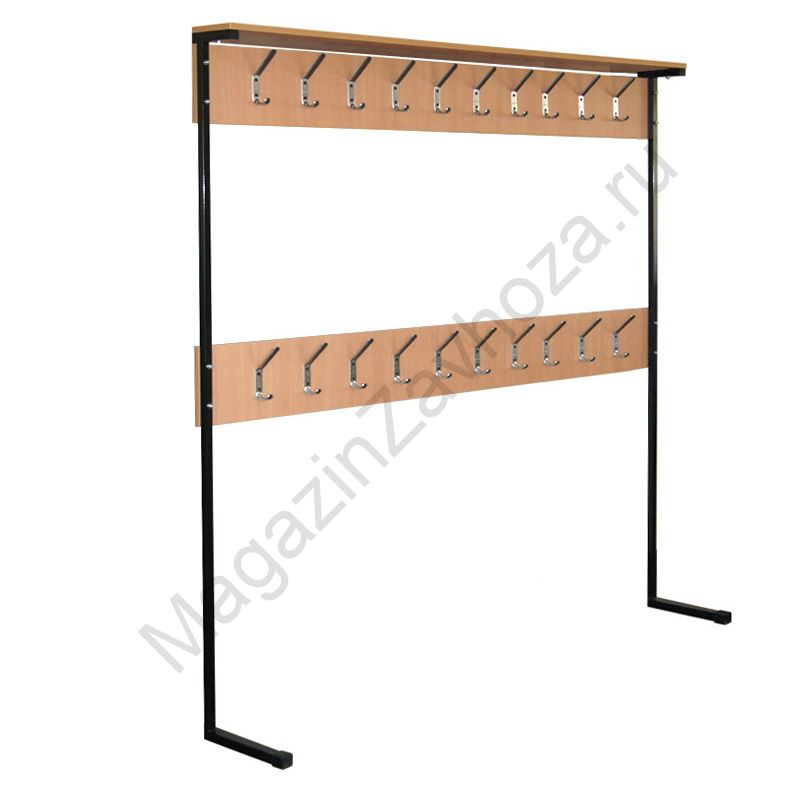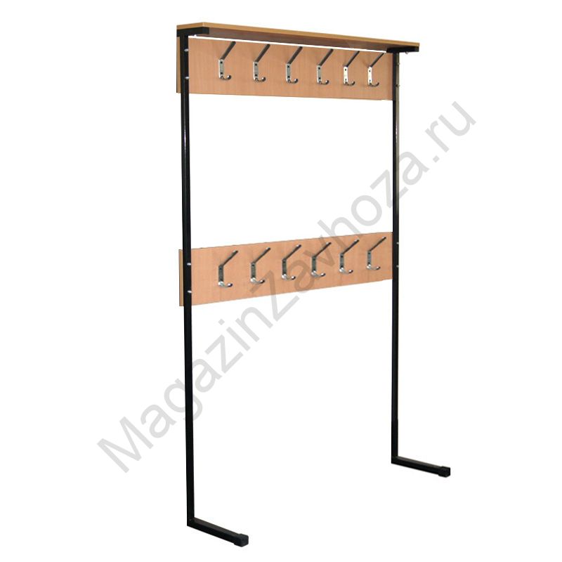 Металлокаркас: труба-квадрат 20х20; 25х25. Покрытие каркаса: полимер ЧЕРНЫЙ. ЛДСП БУК 16мм. Крючки металлические.