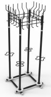Вешалка гардеробная. Материал — стальная труба диаметром 38 мм. Поставляется в разобранном виде. 20 мест для размещения одежды и головных уборов. Подставка для зонтов. Нагрузка на верхний крючок для головных уборов — 1 кг. Максимально допустимая нагрузка — 64 кг. Цвет в ассортименте.