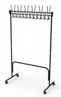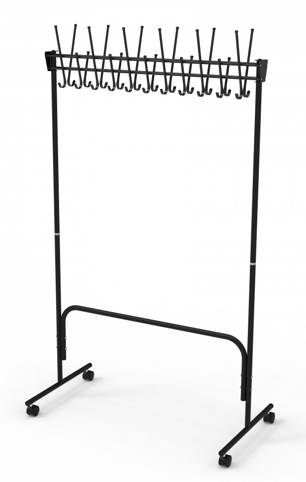 Вешалка выполнена из оцинкованной стали с полимерным покрытием. Крючки вешалки выполнены из трубы диаметром 10 мм. Вешалка поставляется в разобранном виде, в картонной таре. Эта модель вешалки может использоваться как фрагмент для обустройства гардеробных комнат. Кол-во крючков 22 шт. Цвет в ассортименте.