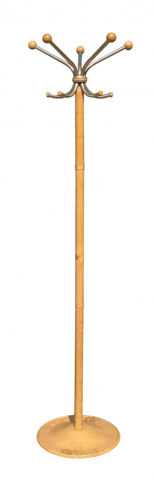 Вешалка напольная Титан-Д ,цвет в ассортименте: бук, вишня. Каркас и основание изготовлены из оцинкованной стали с полимерным покрытием. Вешалка напольная оснащена 5 крючками, заглушки крючков выполнены из натуральной древесины в форме шариков. Нагрузка на верхний крючок для головных уборов — 1 кг. Нагрузка на нижний крючок для одежды — 5 кг. Максимально допустимая нагрузка — 20 кг. Ø440; Н=1865 (основание Ф395)