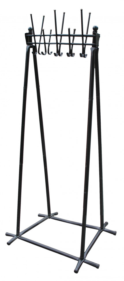 Групповая вешалка на 10 мест. Вешалка выполнена из оцинкованной стали с полимерным покрытием. Крючки вешалки выполнены из трубы диаметром 10 мм. Вешалка поставляется в разобранном виде, в картонной таре. Эта модель вешалки может использоваться как фрагмент для обустройства гардеробных комнат. Размер изделия: 695х570х1805 мм