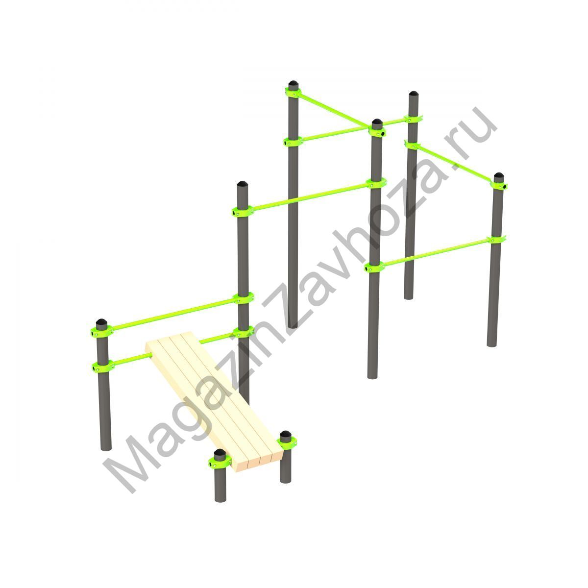 W349 Воркаут (наклонная скамья и 5 перекладин) Zavodsporta