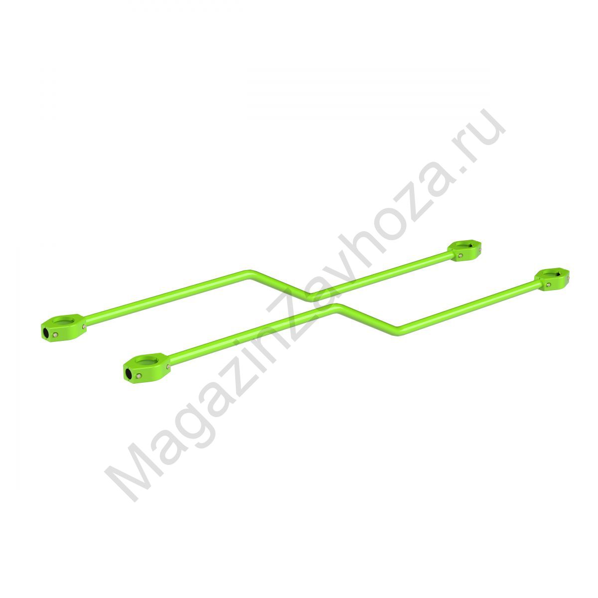 Перекладины выполнены из трубы диаметром 42 мм со смещением по вертикали.На торцах трубы установлены хомуты WORKOUTХ89-42ЛН с крепежом (винты М10 и гайки самоконтрящееся М10).Покрытие полимерная порошковая краска. Монтажный размер 2289 мм по осям столбов.